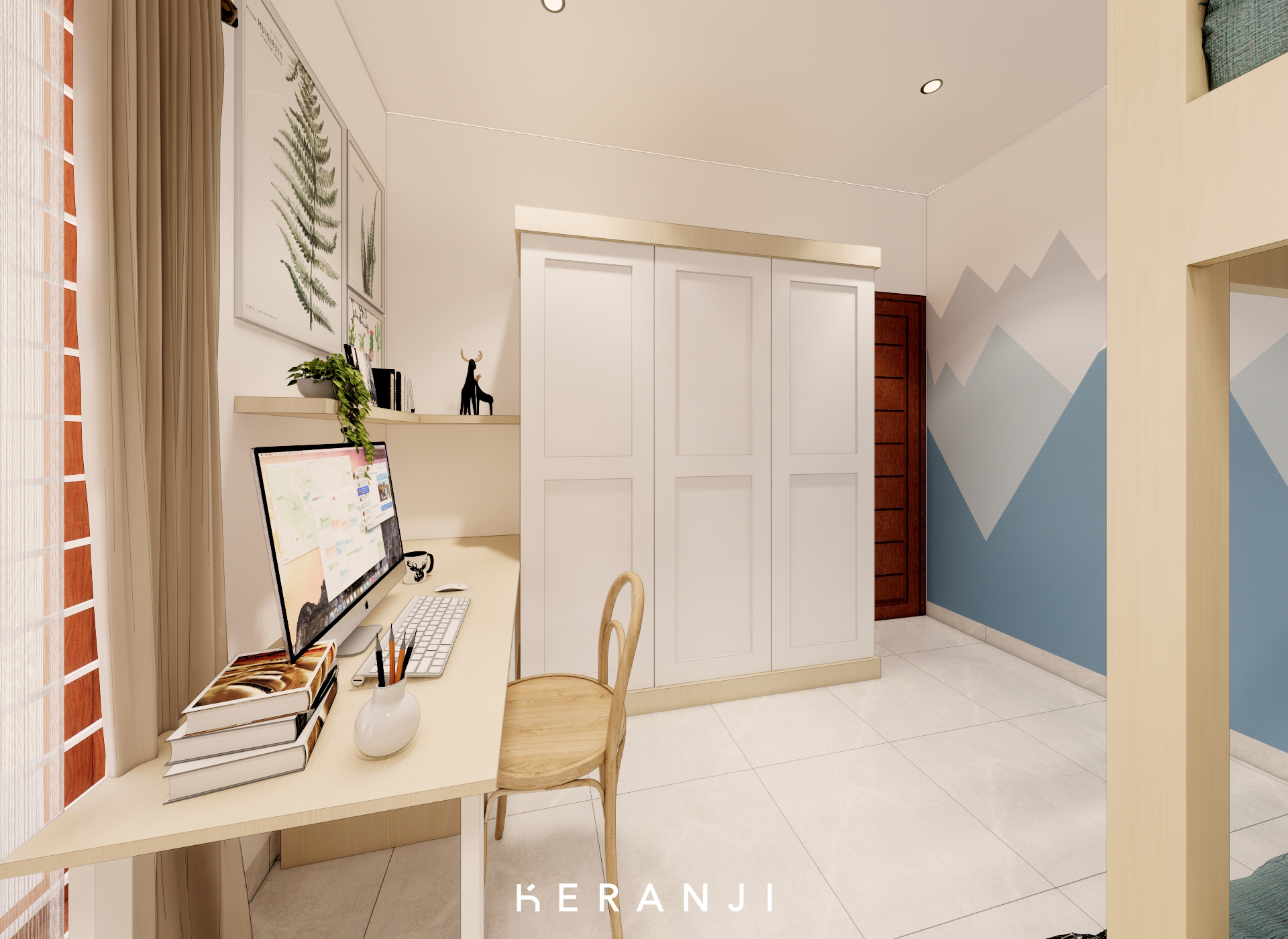 Himala Kids Bedroom adalah ruang tidur anak yang dirancang dengan tema pegunungan yang menakjubkan. Dindingnya dihiasi dengan wallpaper pemandangan pegunungan yang indah, menciptakan atmosfer yang menenangkan dan petualangan bagi si kecil. Di tengah kamar, terdapat tempat tidur susun (bunk bed) yang terbuat dari kayu berkualitas tinggi, memberikan kesan alami dan kehangatan. Setiap lantai tempat tidur dilengkapi dengan sprei yang menggambarkan flora dan fauna pegunungan, memperkuat tema alam. Dengan perpaduan desain yang menawan dan nuansa alam yang menenangkan, Himala Kids Bedroom adalah tempat yang sempurna bagi anak-anak untuk merasakan keindahan alam pegunungan di dalam kenyamanan dan keamanan kamar tidur mereka sendiri.